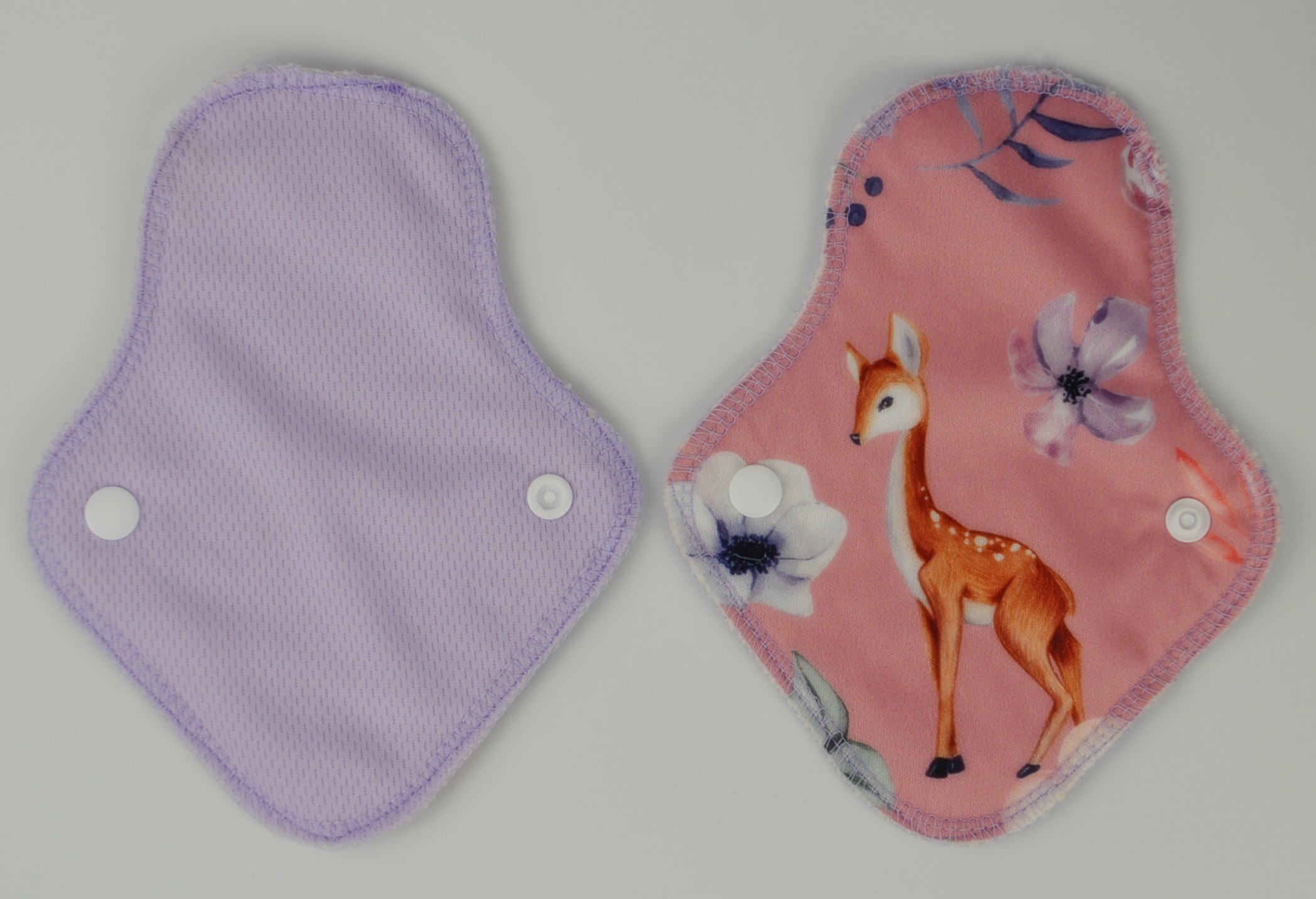 Vékony, de nagy nedvszívó-képességű menstruációs betétek: a test felől egyszínű szárazontartó, hogy ne érezd a nedvességet, és minden foltot könnyedén ki tudj mosni; középen egy réteg 100% biopamut zorb; alul nedvességzáró (mintás vagy egyszínű) pul réteg.18 cm hosszú, és 4,5 cm széles összepatentolva.