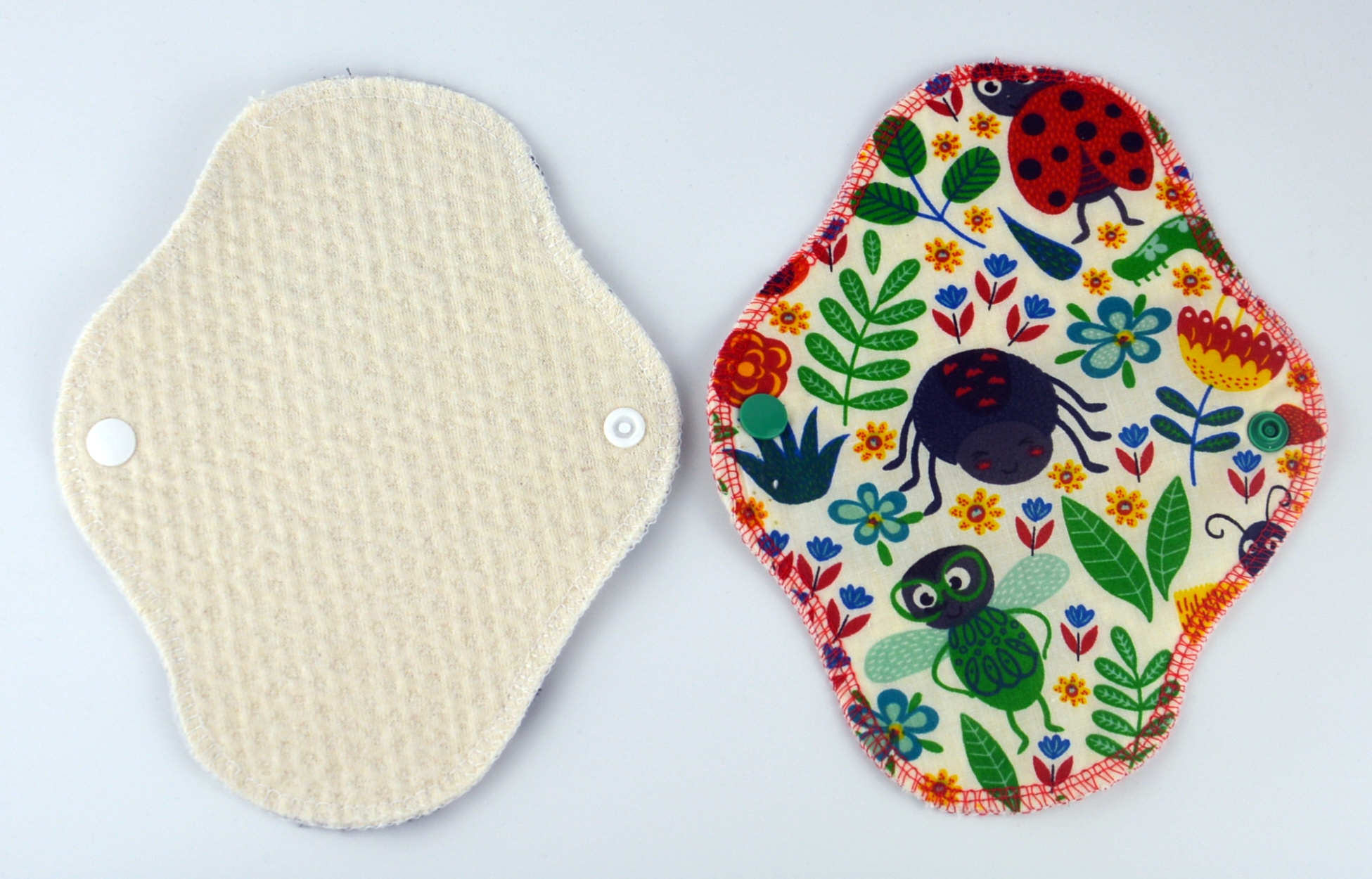 Tisztasági betéteink két rétegből tevődnek össze: egyik oldalon 100% biopamut zorbból, másik oldalán mintás pamutvászonból. Nedvességzáró réteget nem tartalmaz, így bármelyik oldalával használhatod. A normál fazonú tisztasági betét 19 cm hosszú, és 5,5 cm széles összepatentolva. Tisztasági betétünk ideális választás intimkehely, vagy tampon mellé, kiegészítő védelemként, a menstruációs időszakra; de használható önmagában is enyhe folyás vagy inkontinencia esetén.