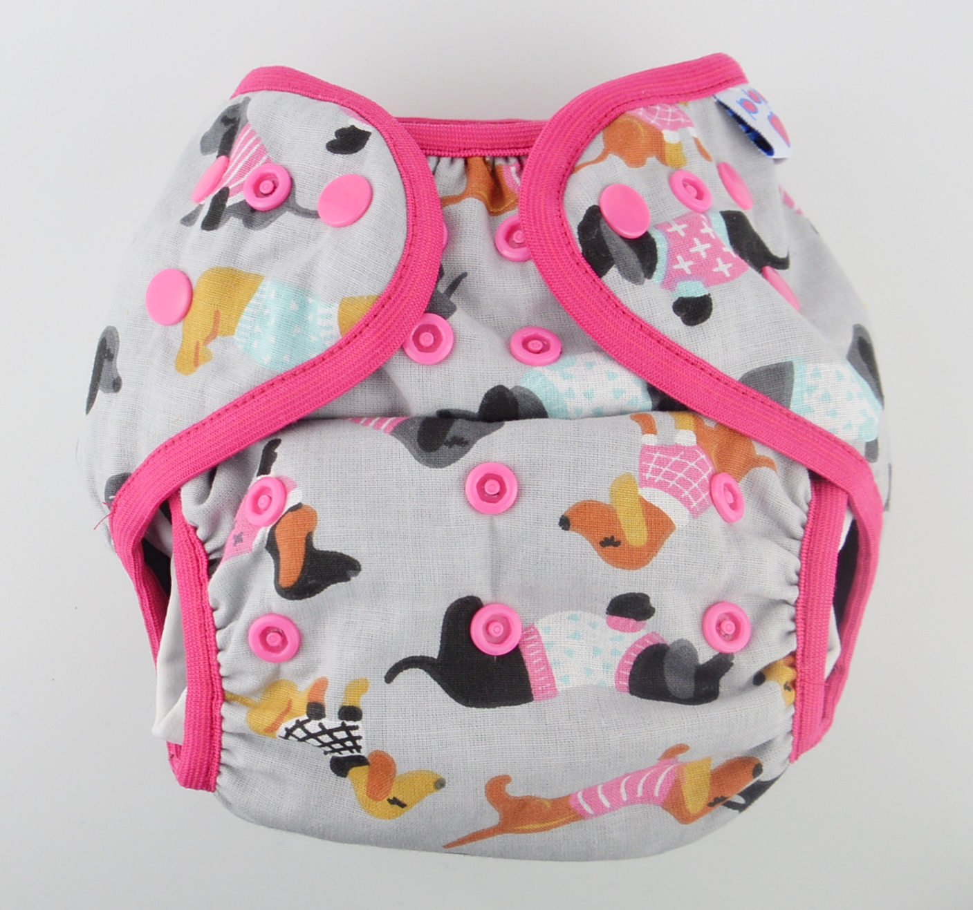 Kívül 100% pamut, belül szuper soft plüss, mely eszméletlenül puha, és nem szívja magába a nedvességet, így megakadályozza, hogy a vízzel teli pelus súlya lehúzza a babát. Körben gumis, így a derék- és combrésznél is szépen a babára simul, megakadályozva azt, hogy bármilyen nemkívánatos dolog a vízbe jusson